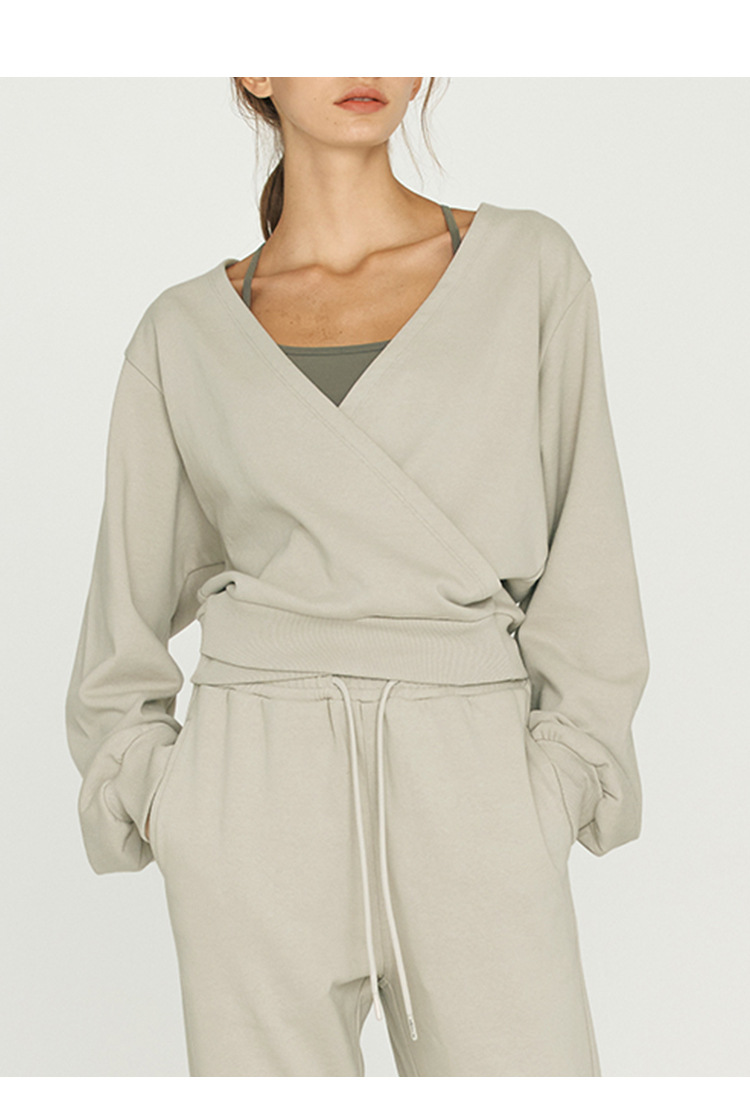 Crafted from a smooth and cozy fabric, this wrap-style top offers a gentle feel against the skin. Designed for all-day comfort, it’s perfect for relaxing or light activities.