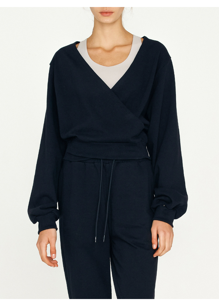 The crossover neckline creates a feminine and elegant silhouette, while the relaxed fit allows easy movement. A stylish piece that feels as good as it looks.